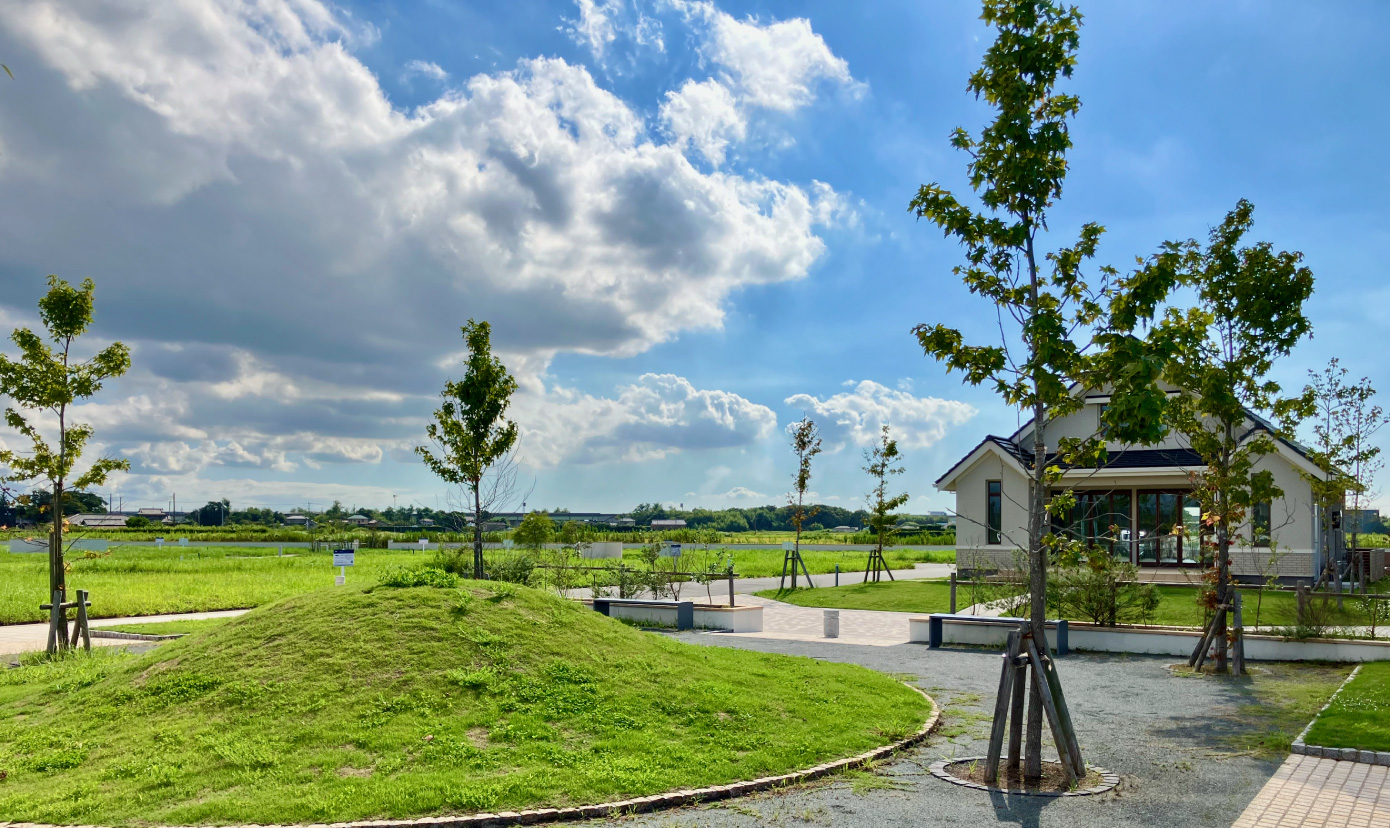 クラブハウスと共に「袖ケ浦ブライトテラス」のシンボルとして設けられた「坂市広場」。園内には美しい紅葉が楽しめるモミジバフウを植栽。子ども達の遊び場としてはもちろん、居住者同士の交流の場や憩いの空間となる街区公園です。