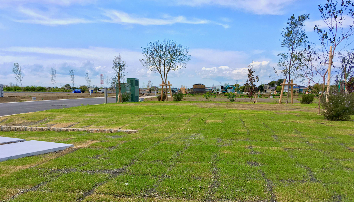 街区内に点在する、芝生が敷き詰められた共用緑地。ペットのプレイランドとしても利用できるほか、ご家族やお住まいの方同士などでバーベキューやデイキャンプも可能。さまざまな使い方ができるコミュニティスペースです。