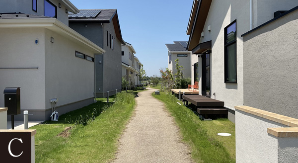 他にも、お隣との境界線から外壁までの距離を広く取るルールを街全体に定めることで、将来に渡って光と風が通る街を目指しています。