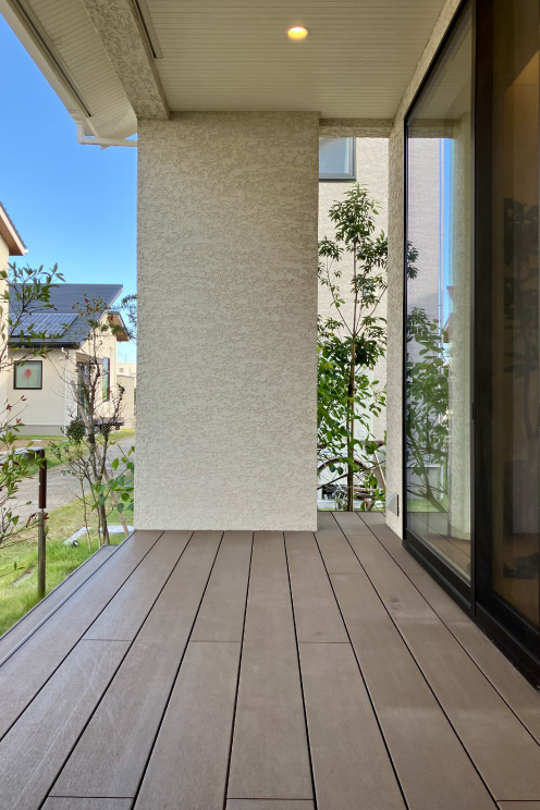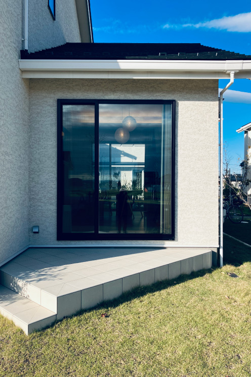 ダイニングから容易にアクセスできる開放的なテラス。休日はチェアー、テーブルをセットして、オープンエアなティータイムやBBQが楽しめます。